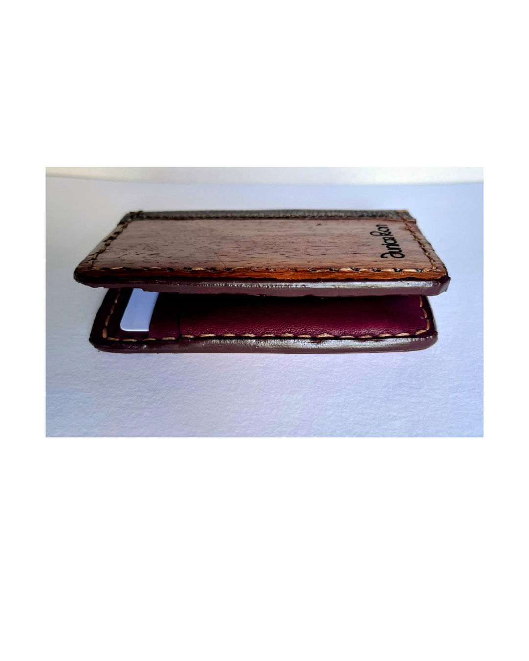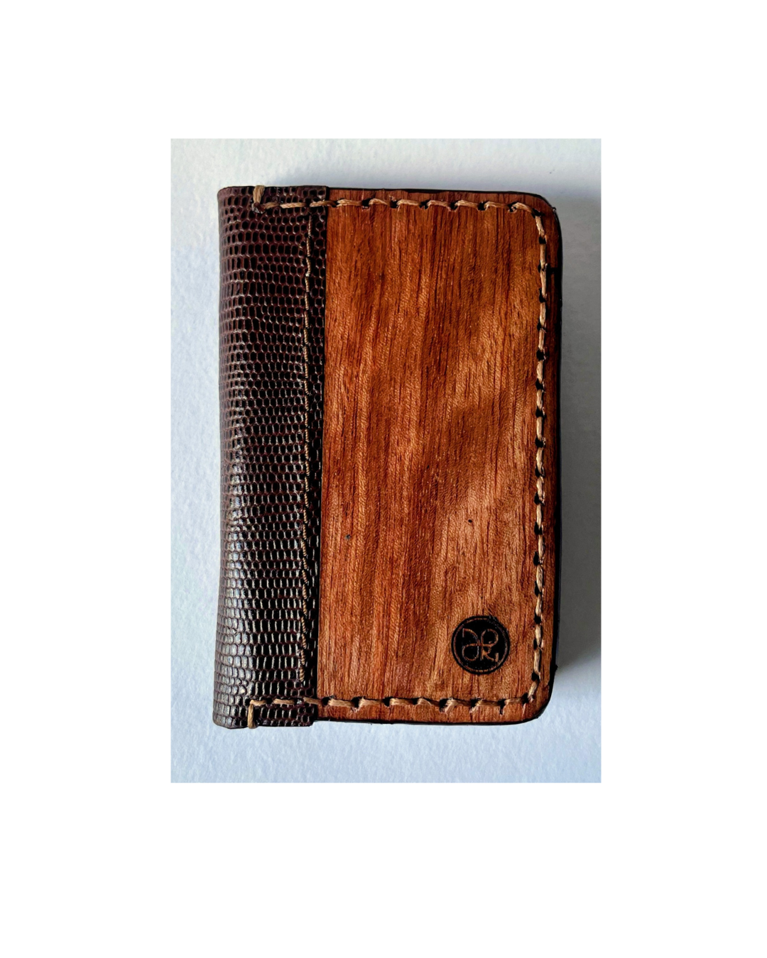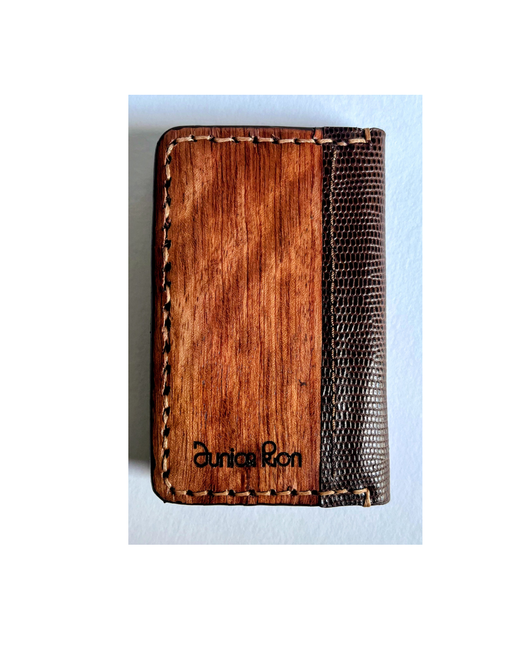 Porte cartes 06 compartiments en cuir imprimé reptile et en bois de BUBINGA