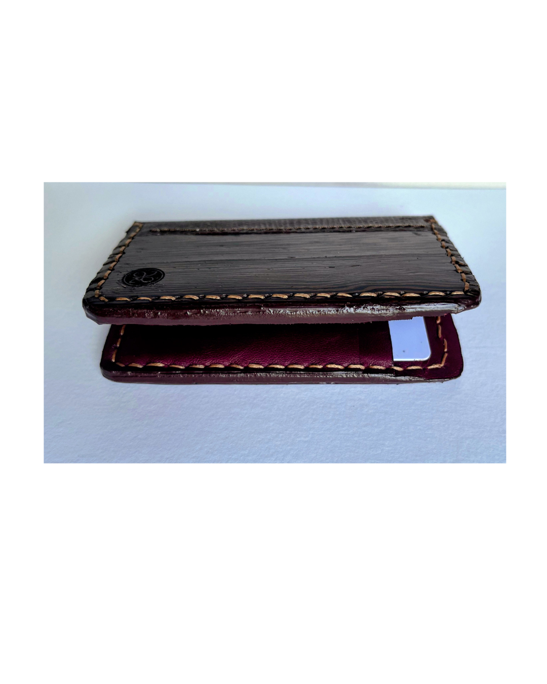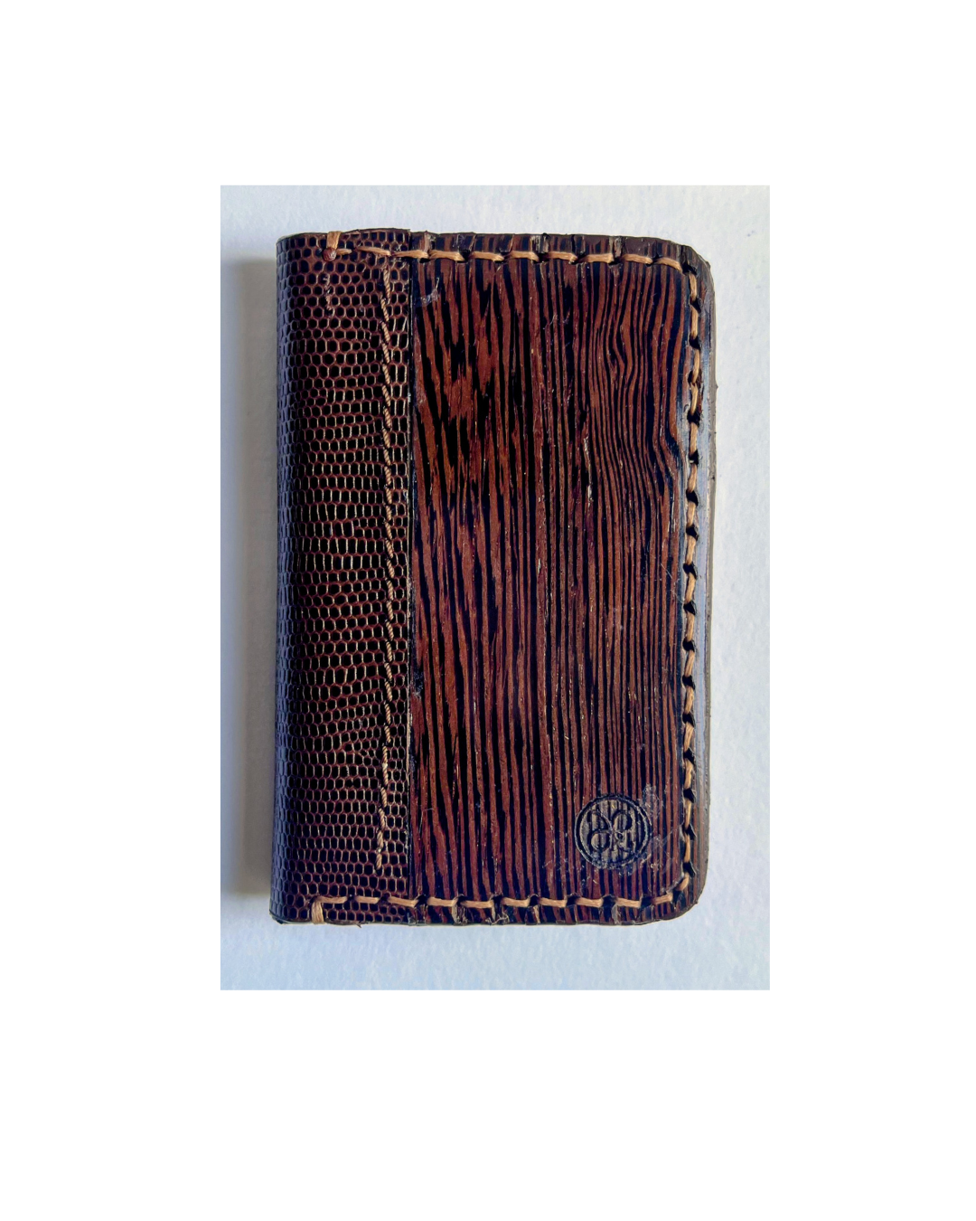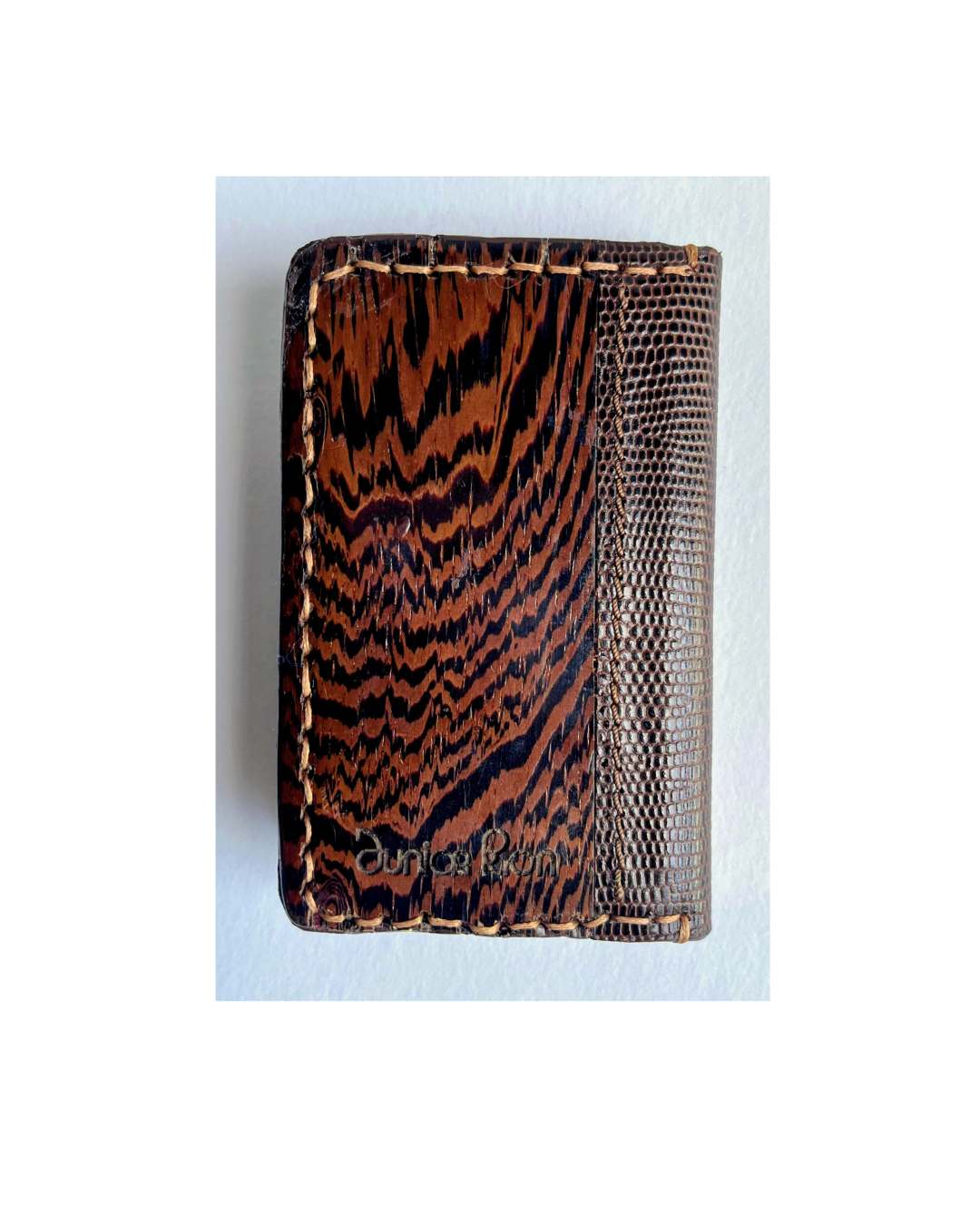 Porte cartes 06 compartiments en cuir imprimé reptile et en bois de WENGUE
