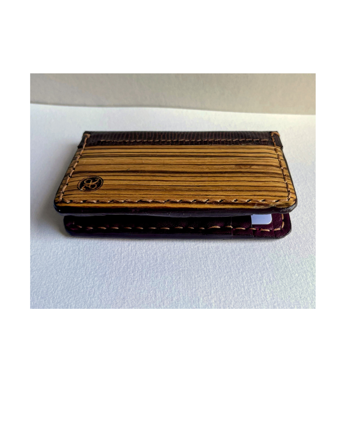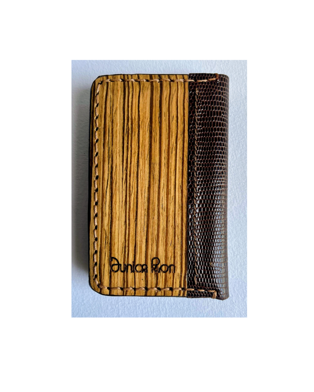 Porte cartes 06 compartiments en cuir imprimé reptile et en bois de ZINGANA
